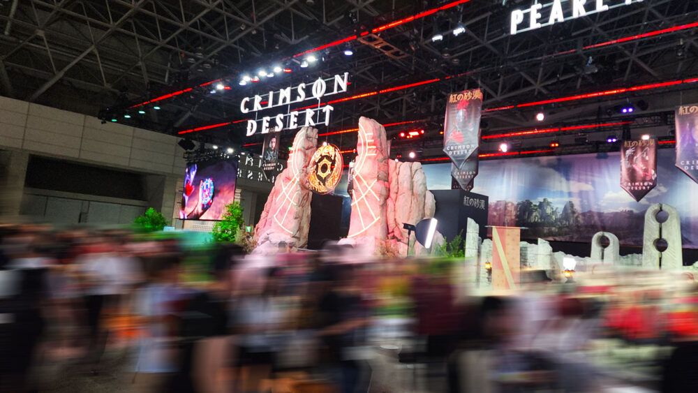 広大な大陸を冒険するオープンワールドのアドベンチャーゲーム 紅の砂漠 の、試遊体験が国内初可能です。ブース内には多くの試遊台が用意されており、ゲーム内の戦場を再現したフォトスポットもあります。