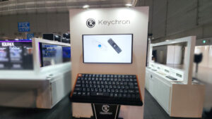 心地よい打鍵感、高い品質、耐久性を兼ね備えた拘りあるキーボードを展開する「Keychron」では、超強大なキーボードがブース手前でお出迎え。幅広いユーザーの使用ニーズに合わせた多種多様なキーボードが展示されています。