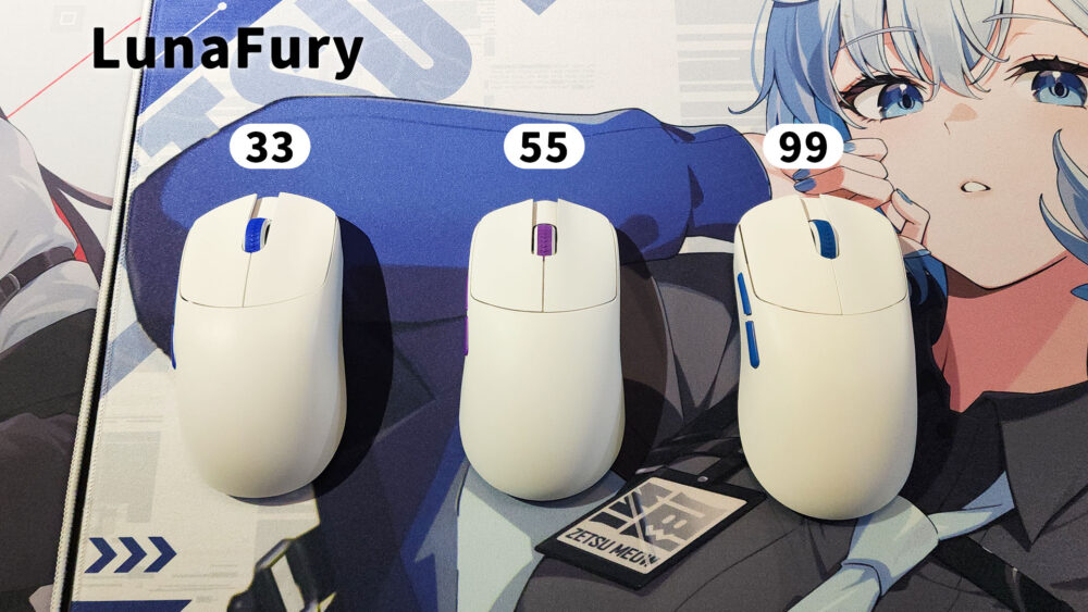 海外で話題のゲーミングメーカー「LunaFury」が手掛けるLUNAシリーズのゲーミングマウス、33、55、99の先行展示が行われています。