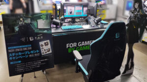 よりゲーマーのためのゲーミングチェアを目指す「AIMchair」では、新作「AIMchair Pro」を試座できる展示となっており、ゲーマーのパフォーマンスを支えるチェアとして注目を集めていました。