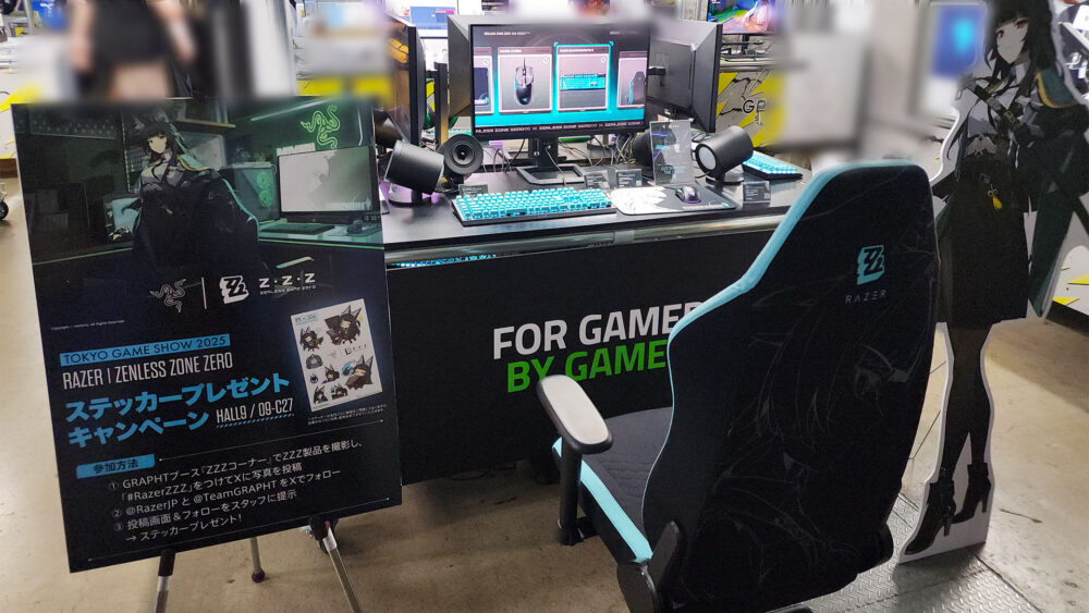 アーケードコントローラー「iO」を中心とした様々なモデルから、Razerとゼンレスゾーンゼロとのコラボゲーミングデバイスの展示がGRAPHTにて行われています。また、物販コーナーでは限定のコラボ商品も展開していました。