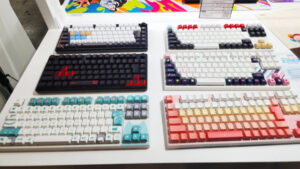 様々なコラボデザインのキーボードが展示されており、それぞれがイメージされた楽しいキーボード体験が可能です。