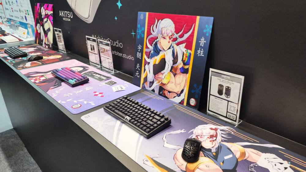 話題の RAKKA 60 ATLAS の実機や、HachiwareGamingのマウスパッドなど注目のゲーミングデバイスを展示しています。