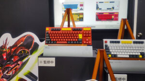 高精度で最高の打鍵感を追及するプロフェッショナル向けキーボードでお馴染みの REALFORCEから、ガンダムシリーズや人気Vtuber「猫麦とろろ」さんとのコラボキーボードが展示されています。