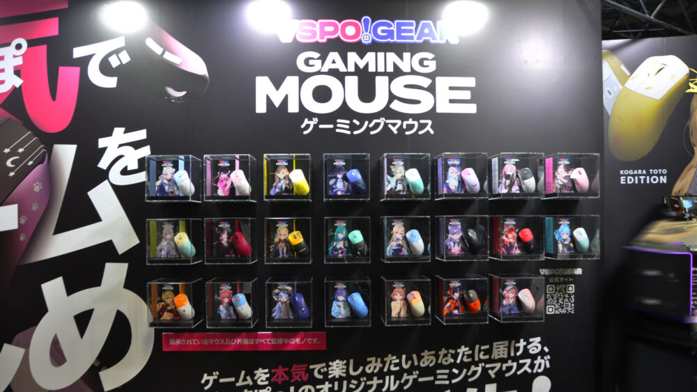 特に注目されているのが、プロeSportsとの共同開発も手掛けるゲーミングデバイスメーカー Pulsar と 数多くの人気Vtuberが所属する ぶいすぽっ! がコラボしたゲーミングマウスになります。それぞれのVtuberをモチーフとしたデザインは、ファン必見となるブースとなっています。