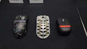 ゲーミングマウスやゲーミングキーボードなど、様々な最新デバイスが展示されています。
