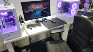 ゲーミングモニターランキングNo.1を獲得した人気ゲーミングデバイスブランド「Pixio」のブースでは、様々なゲーミングモニターを展示。注目は人気Vtuber「結城さくな」さんのゲーミングルームを再現し、「初音ミク」とのコラボモニターなどが展示されています。カラーバリエーション豊富なゲーミングモニターは、インテリア性と性能を両立しており、来場者が実際に体験できる展示となっていました。